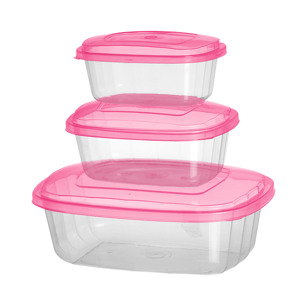 Conjunto Pote Retangular Médio Com 03 Peças Transparente - 633